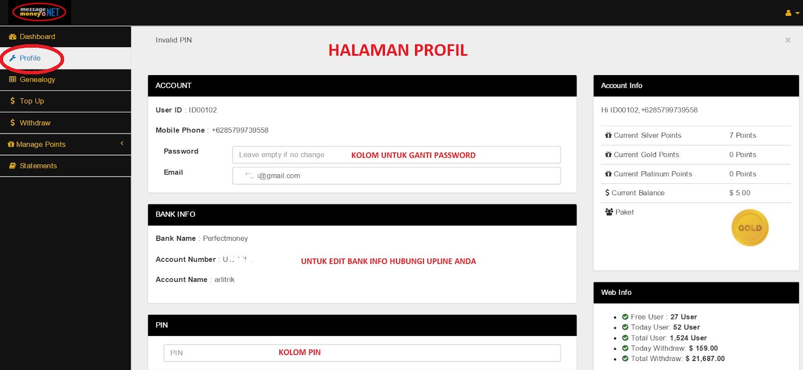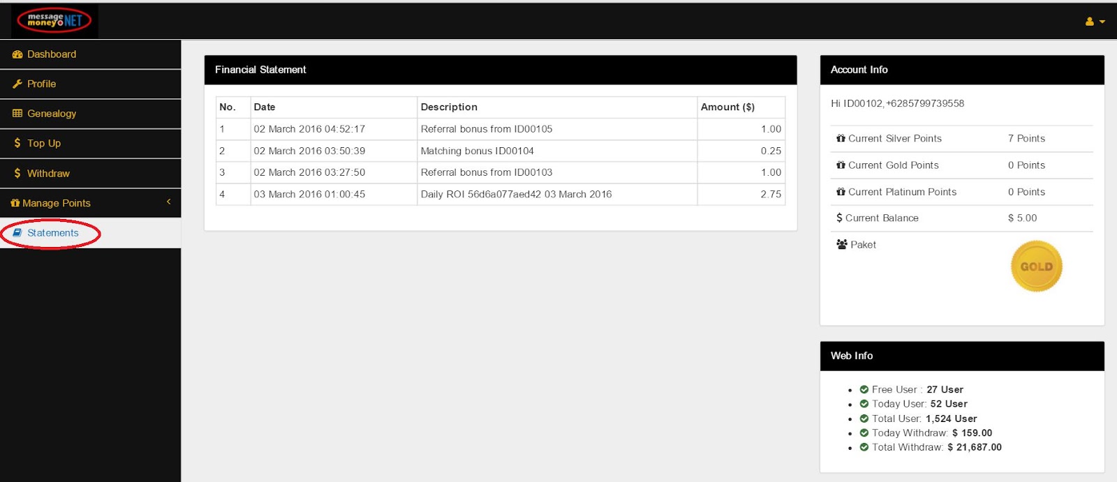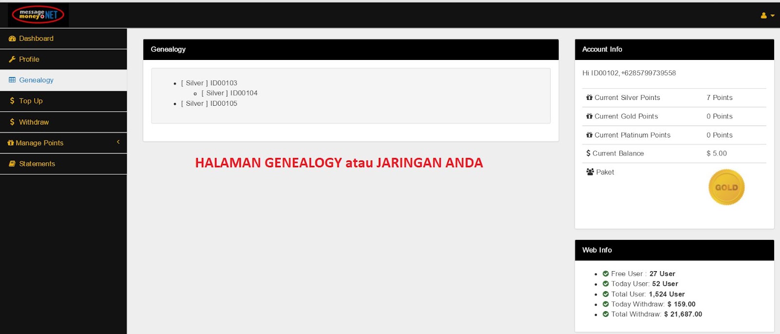 Ini semua tidak lepas dari system di MessageMoney.Net yang memberikan reward /bonus pengembangan jaringan.