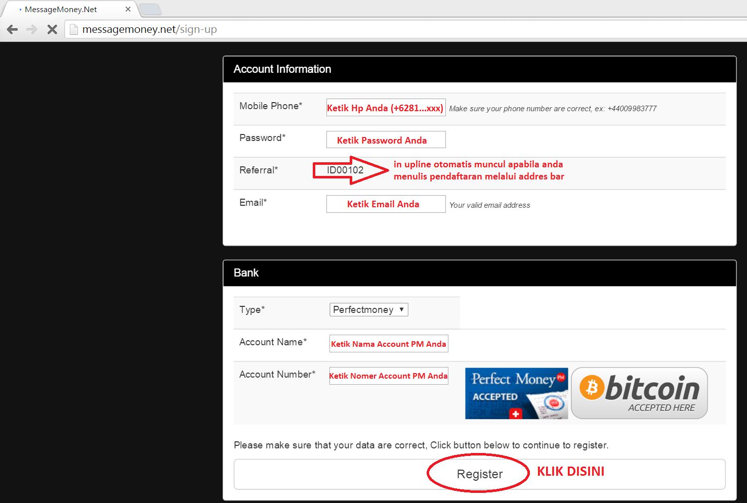 Baca Juga : Cara Daftar di MessageMoney.Net disini
