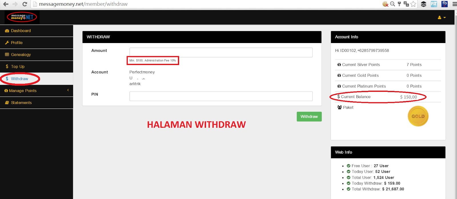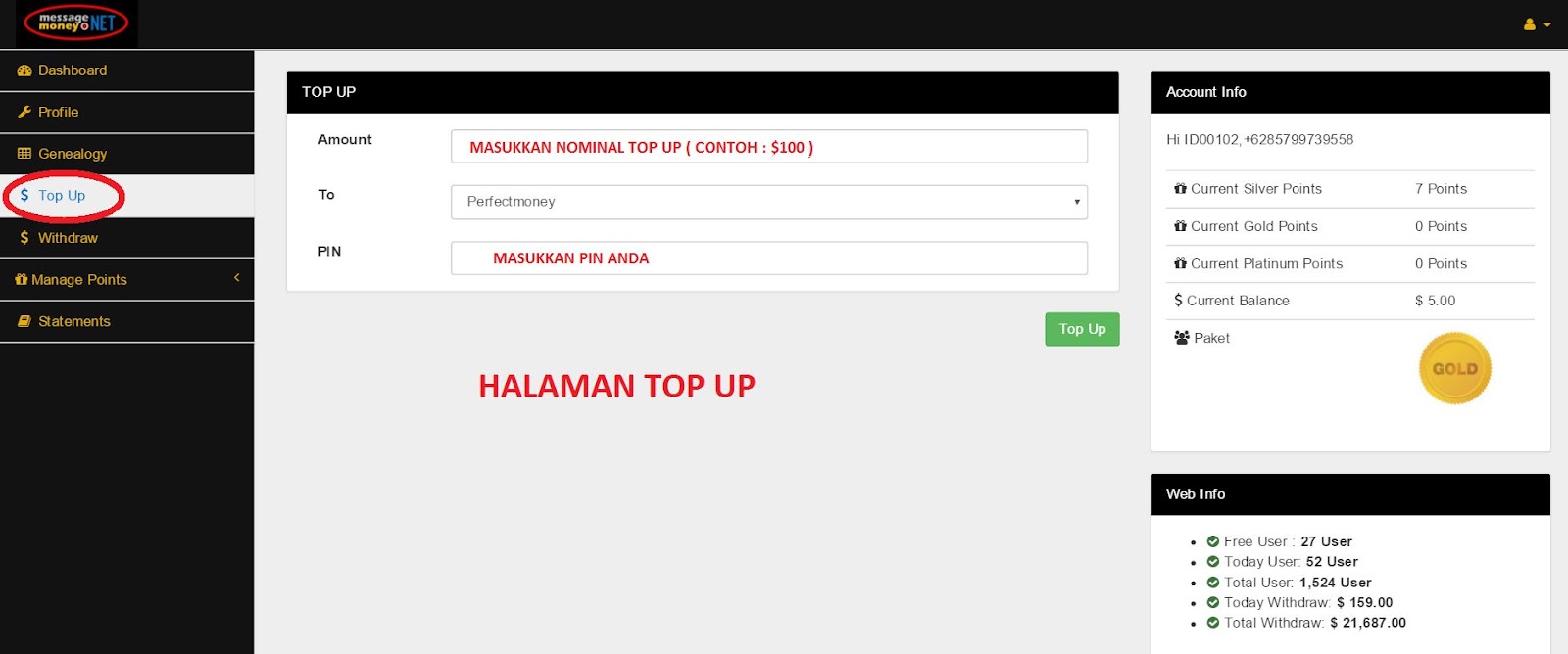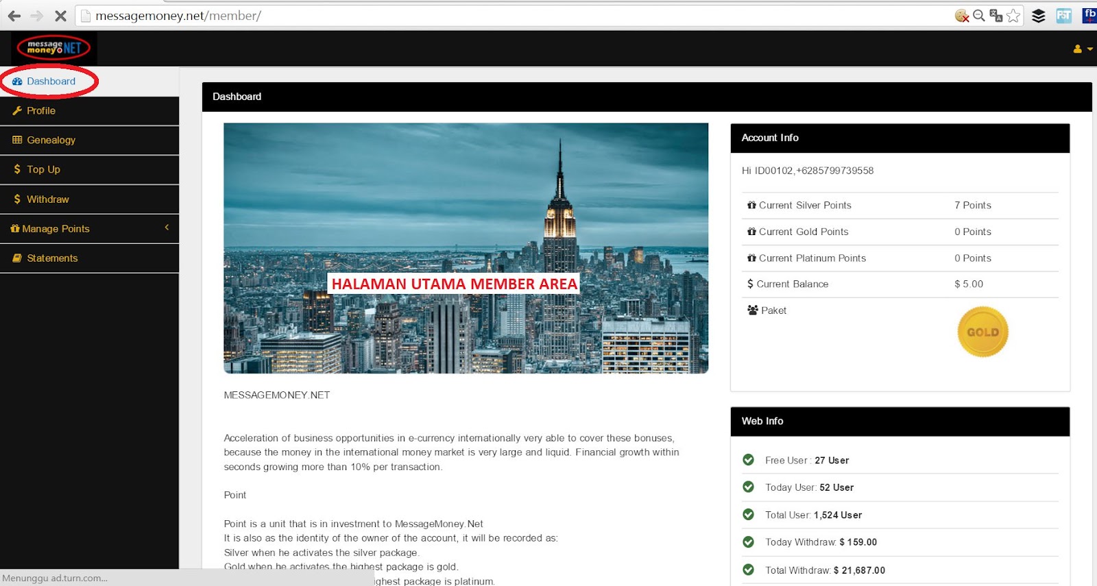 Panduan MessageMoney - Dengan bergabung di MessageMoney.Net, akan mendapatkan profit sampai 3% / hari selama 60 hari dari total investasi Anda.
